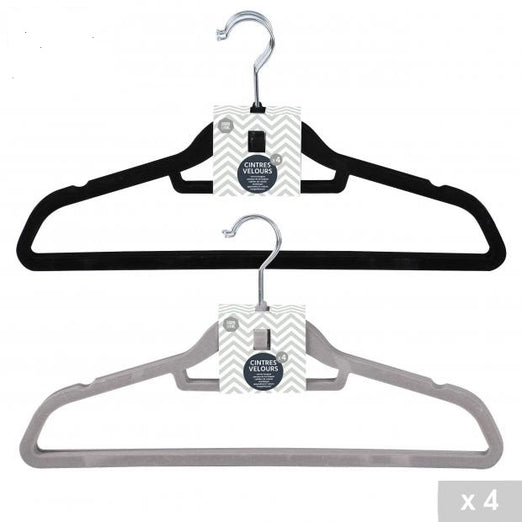 PACK OF 4 BLACK/GREY VELVET HANGERS
