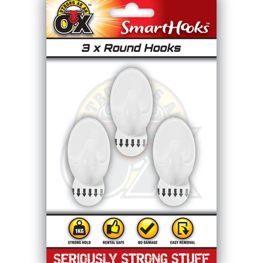 REMOVABLE 3 PACK ROUND HOOKS