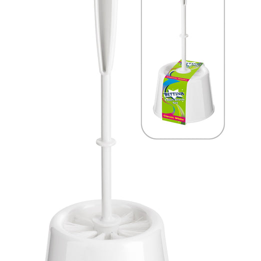 WHITE PLASTIC TOILET BRUSH SET