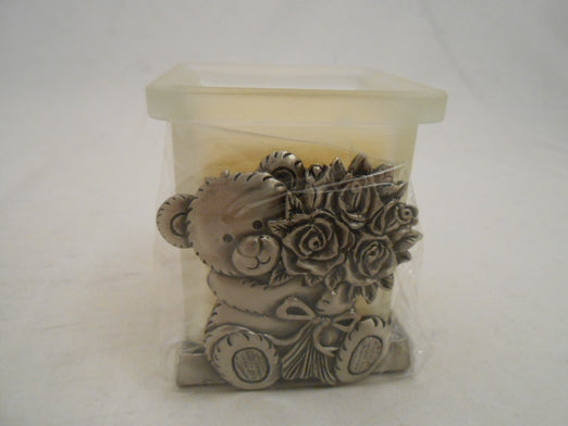 MINI BEAR WITH FLOWERS PEWTER CANDLE HOLDER