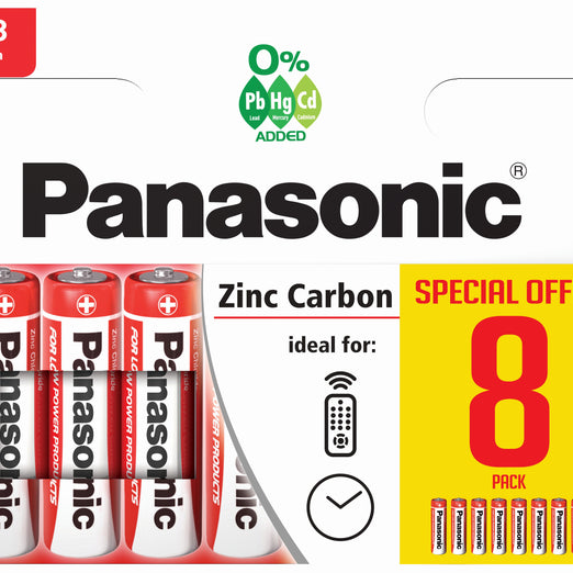 PACK OF 8 PANASONIC AA ZINC BATTERIES