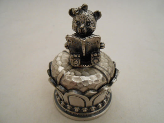 BEAR WITH BOOK DESIGN PEWTER TRINKET BOX