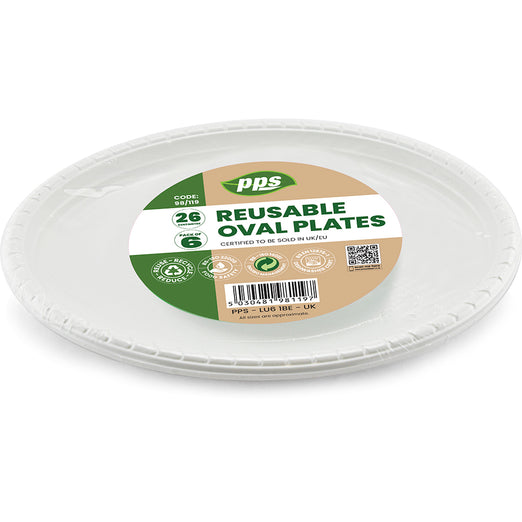 PACK OF 6 WHITE PLASTIC OVAL PLATES