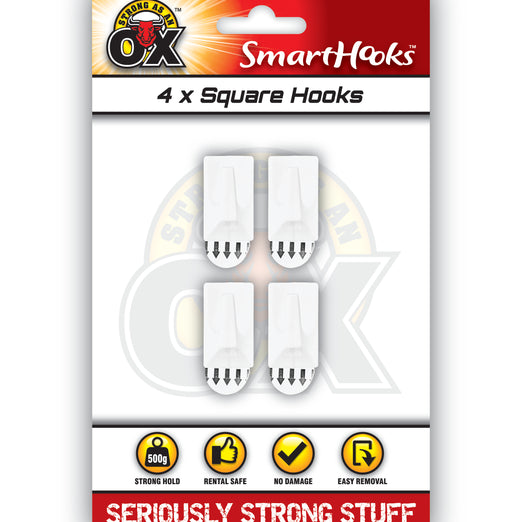 REMOVABLE 4 PACK SQUARE HOOKS