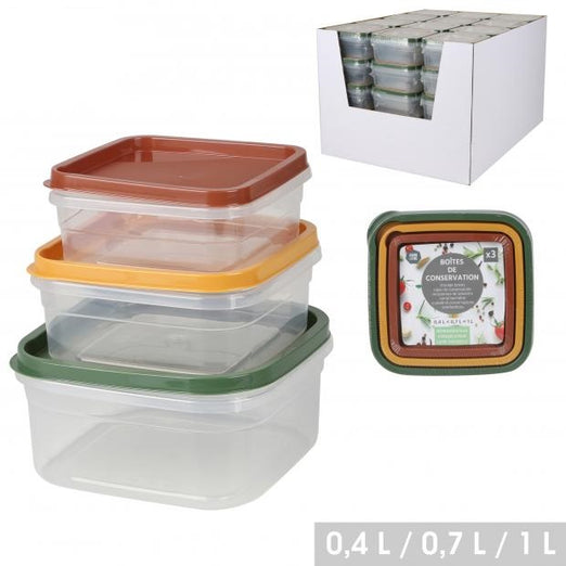 SET OF 3 ASST. 0.4L/0.7L/1.0L SQUARE FOOD CONTAINERS