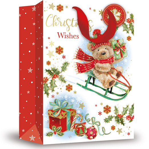 EXTRA LARGE TEDDY ON SLEIGH XMAS BAG