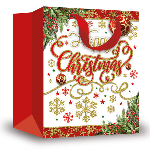 LARGE HAPPY XMAS TEXT GIFT BAG