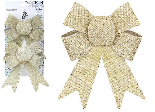 PACK OF 2 CHAMPAGNE 13CM X 17CM TINSEL BOWS