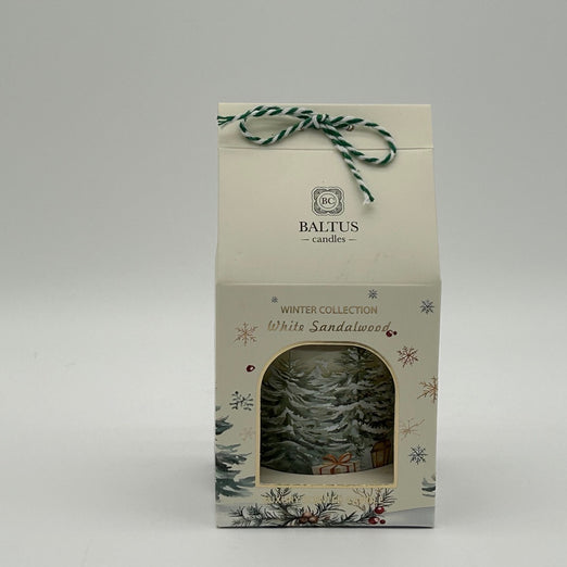 WHITE SANDALWOOD 7CM X 8CM DECORATED GLASS CANDLE