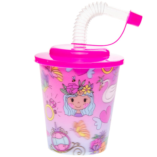 PACK OF 12 PRINCESS DESIGN 3D CUP WITH STRAW