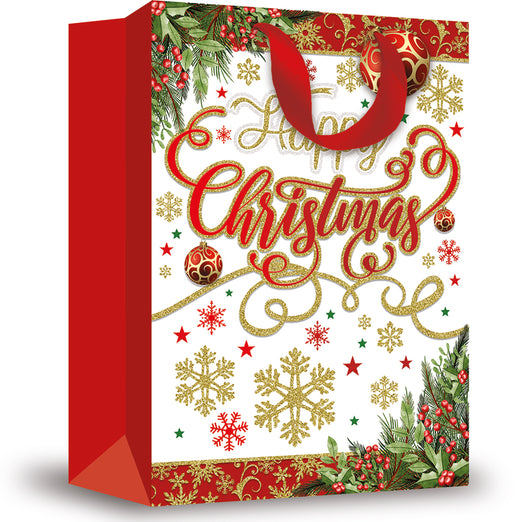 EXTRA LARGE HAPPY XMAS TEXT GIFT BAG