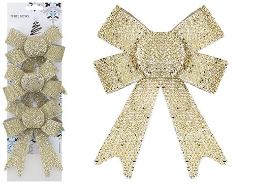 PACK OF 3 CHAMPAGNE 10CM X 13CM GLITTER BOWS